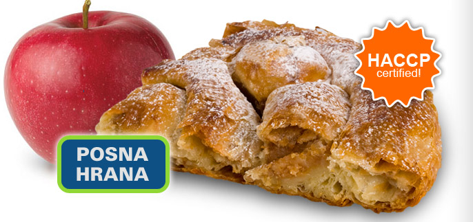 brašno, voda, so, biljna mast, sveža jabuka, suvo grožđe, cimet, prah šećer, prezla, vanilin šećer